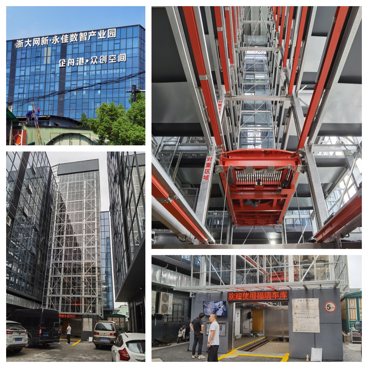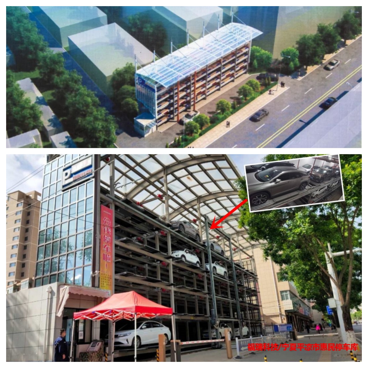 右下图:福瑞科技设计/承建的15层塔式立体车库